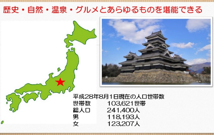 また長野県下で最大の面積を誇り、歴史、自然、温泉、グルメを堪能できる豊かなエリアです。