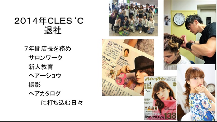 美容カリスマブームに憧れて美容師になりクレスという大型サロンに勤めていました。そこでの活動はサロンワーク、撮影、雑誌掲載、ヘアショウなど憧れを叶えられる環境に満足していました。