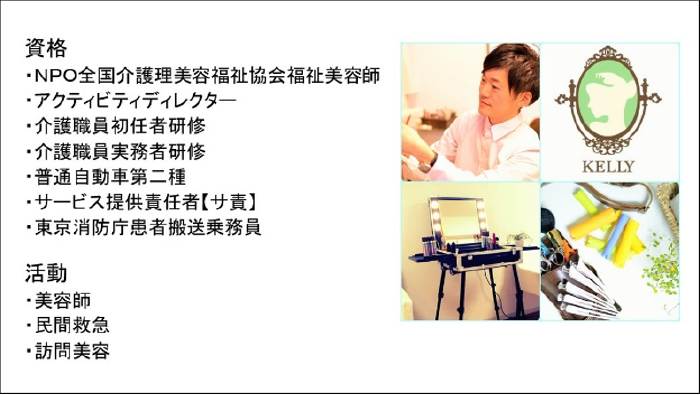 なぜ資格を取ったかというと、まだ開業前に訪問営業に行っていた頃、営業に行っても個人を企業は相手にしてくれないばかりでなく、美容師に介助の必要な利用者を任せられないと言われ、非常にハードルが高いと痛感しました。