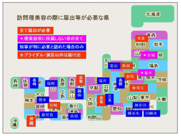 訪問理美容実施にあたって届出が必要な府県と条件は図のようになっています。