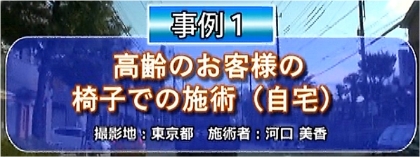 事例は「①高齢のお客様の椅子での施術(自宅)=東京都・河口美香」