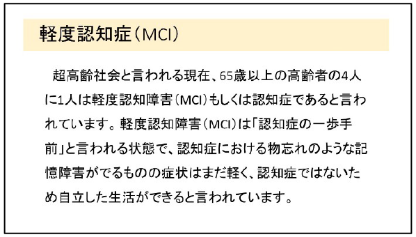 いま軽度認知症(MCI)の方が増加している現状がこのように身近に起こっているのが現実です。