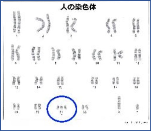 「ダウン症」と言う言葉を聞くと、「気持ちがダウンするから」などと誤解されていますが、正確に理解して欲しいと思います。人間の染色体は常染色体22対と、性染色1対あり、2本ずつの対になっています。そのうちの常染色体の21番目が通常は2本なのに、ダウン症は3本あります。こうしたダウン症は600人から800人に一人の割合で発生しているとされています。